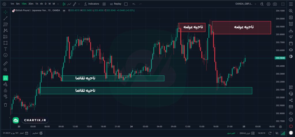 نواحی عرضه و تقاضا ابزاری پیشرفتهتر از سطوح سادهی حمایت و مقاومتاند، زیرا منشأ حرکات پرقدرت بازار را نشان میدهند؛ یعنی همان نقاطی که عدمتعادل واقعی میان خریداران و فروشندگان شکل گرفته است. درک درست این نواحی میتواند نقطه ورود و خروج تریدر را با دقت بالاتری مشخص کند.