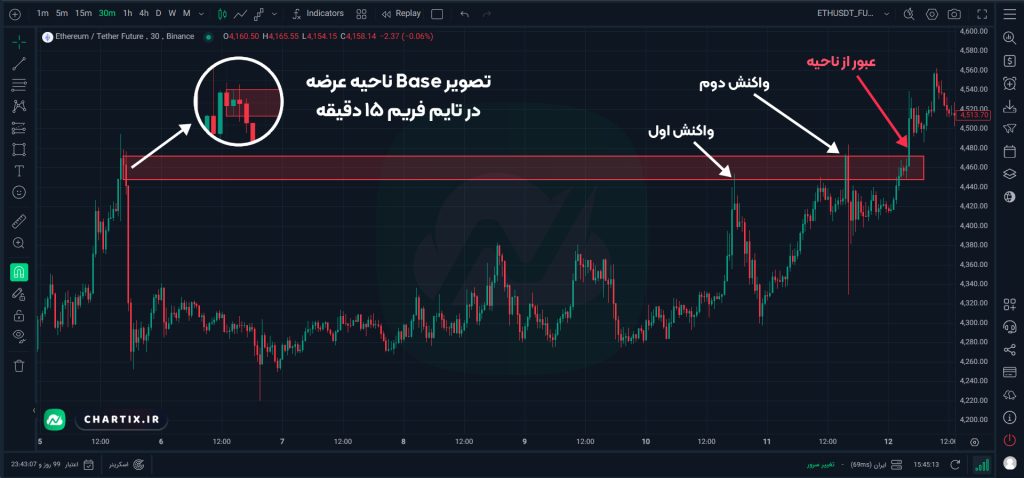 - خروج سریع از ناحیه: هرچه قیمت زمان کمتری در محدودهی رنج بماند، نشاندهندهی عدمتعادل قویتر و اعتبار بالاتر ناحیه است.