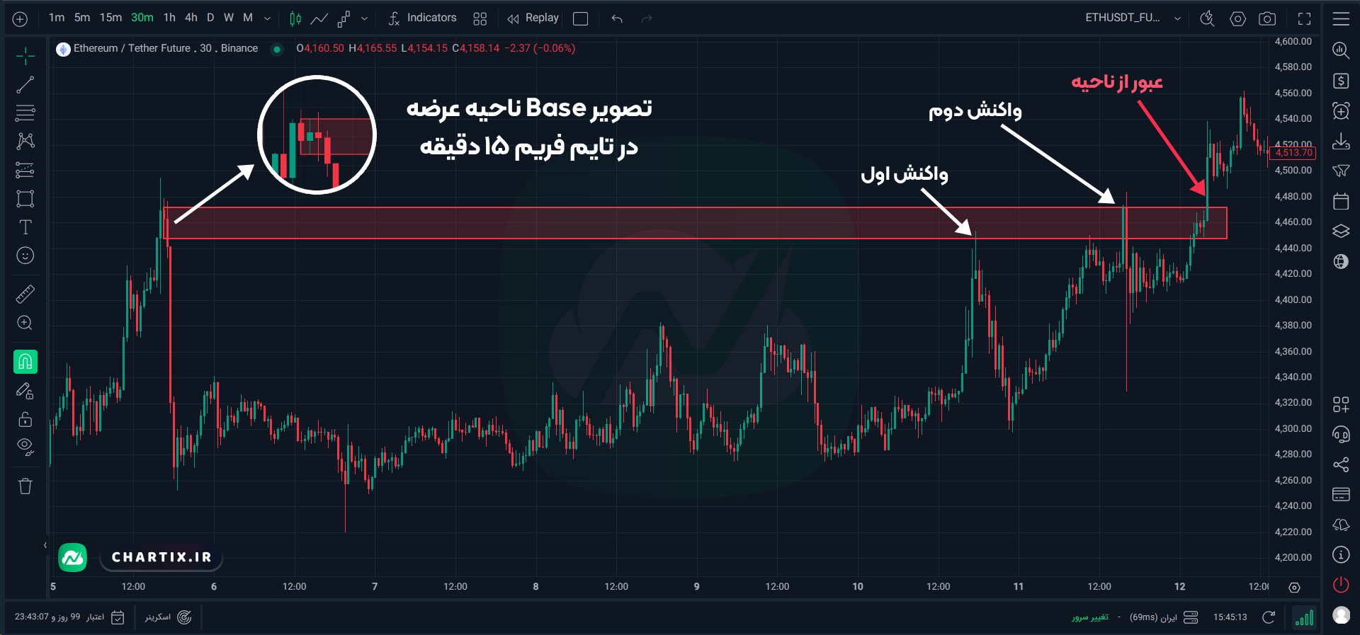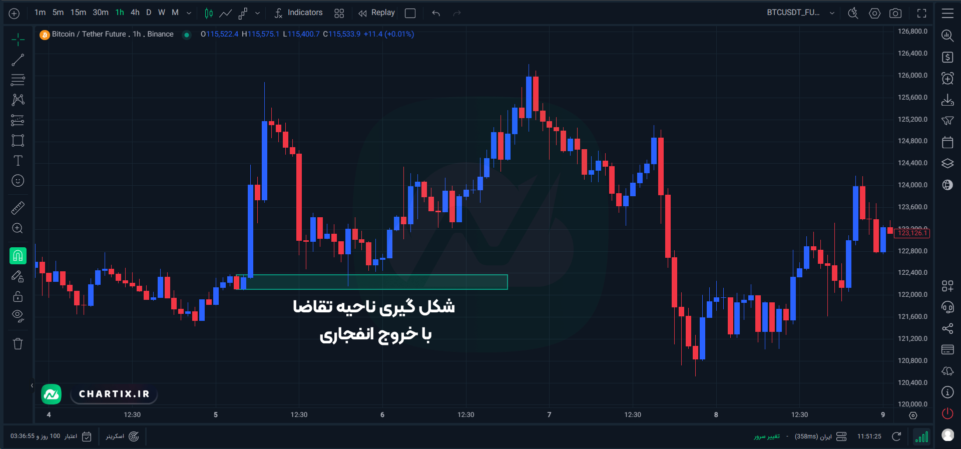 - استفاده از فشار تازهکارها: باید صبور بود و بهجای ورود مستقیم روی سطح، منتظر تأیید برگشت قیمت و شکلگیری الگوی معتبر ماند.