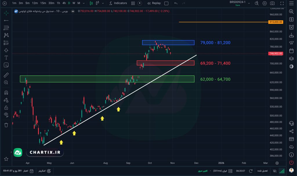 چارت تکنیکال صندوق طلای لوتوس (طلا)