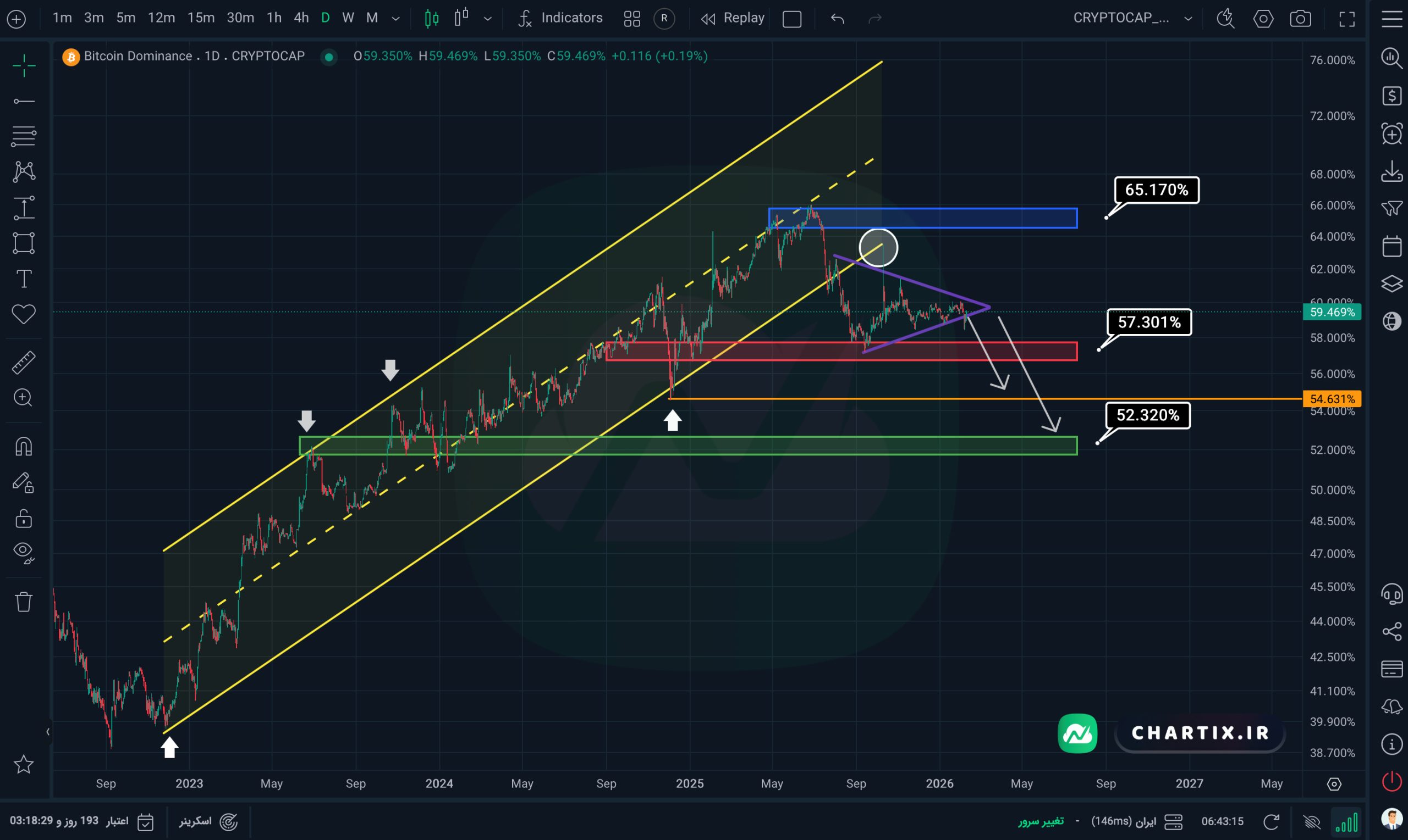 تحلیل تایمفریم روزانه دامیننس بیتکوین