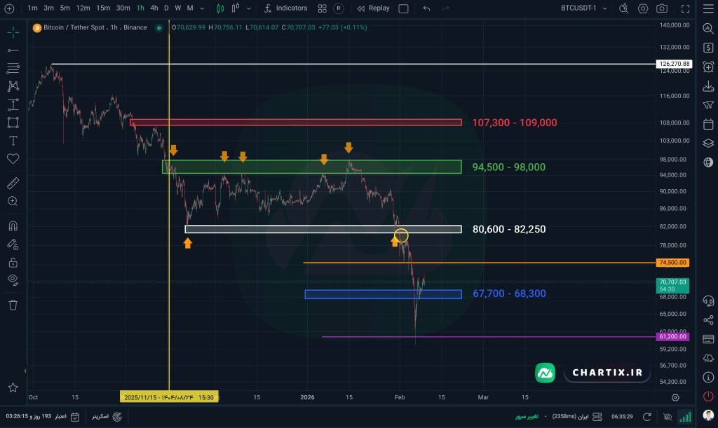 تحلیل تایمفریم ۱ ساعته بیتکوین