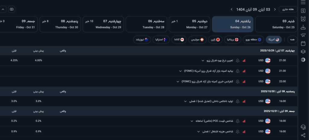 • کنفرانس خبری کمیته بازار آزاد فدرال رزرو آمریکا (FOMC) | چهارشنبه ۷ آبان ساعت ۲۲:۰۰ (مهم)